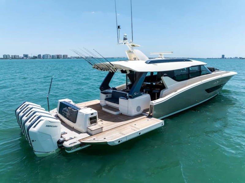 Constructed with a combination of carbon fiber and E-glass, the 670 LXS ensures superior strength and durability while maintaining a lightweight structure for enhanced performance. The yacht's draft of approximately 41 inches enables access to shallow waters, making it ideal for exploring diverse coastal landscapes in the Middle East.